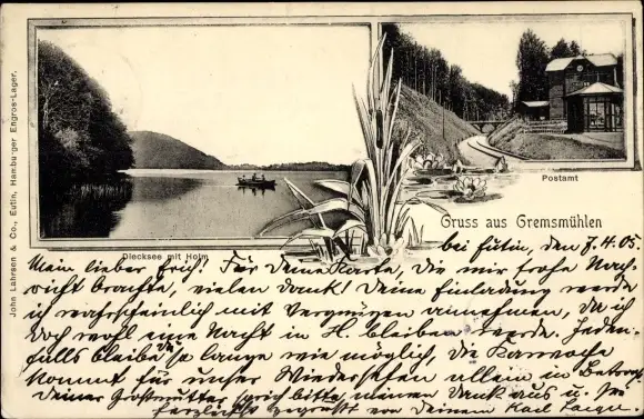 Ak Gremsmühlen Malente in Ostholstein, Postamt, Diecksee mit Holm