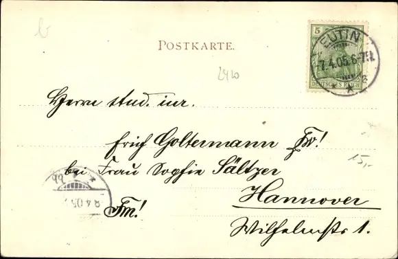 Zustand, siehe Scan, gelaufen, 1905 - ca 14 cm X 9 cm