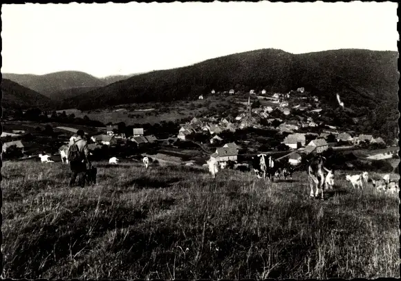 Ak Grendelbruch Elsass Bas Rhin, Totalansicht der Ortschaft, Rinder