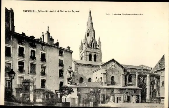 Ak Grenoble-Isère, Kirche St. André, Statue von Bayard