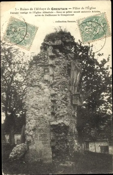 Ak Grestain Calvados, Ruines de l'Abbaye, Pilier de l'Eglise