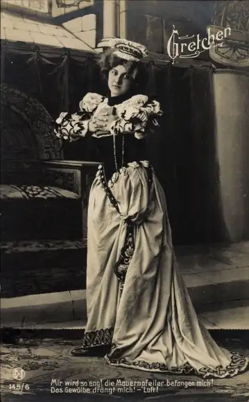 Ak Gretchen, Szene aus Faust, Mir wird so eng, die Mauernpfeiler.., Goethe