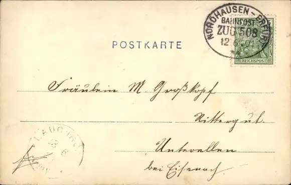 Zustand, siehe Scan, gelaufen, 1901- Bahnpoststempel Nordhausen Erfurt, Zug 508 - ca 14 cm X 9 cm