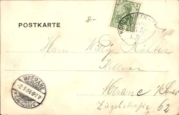 Zustand, siehe Scan, gelaufen, 1904- Bahnpoststempel: Nordhausen - ca 14 cm X 9 cm