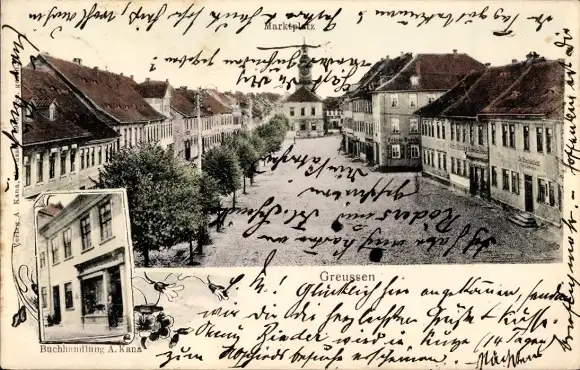 Ak Greußen in Thüringen, Marktplatz, Buchhandlung A. Kaus