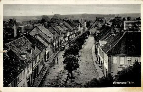 Ak Greußen in Thüringen, Straßenpartie, Drogerie Carl Winke...