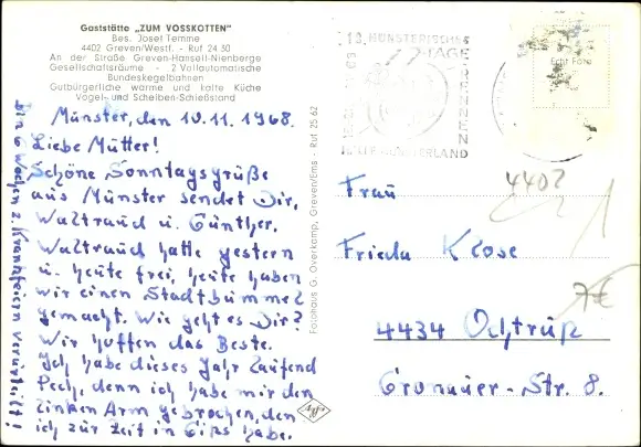 Ak Greven in Westfalen, Gaststätte Zum Vosskotten, Inh. Josef Temme, Kegelbahn