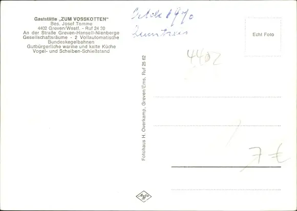 Ak Greven in Westfalen, Gaststätte Zum Vosskotten, Inh. Josef Temme, Kegelbahn