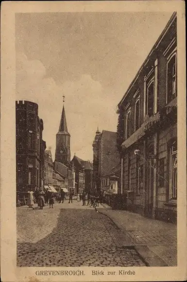 Ak Grevenbroich in Westfalen, Straßenpartie, Kirche