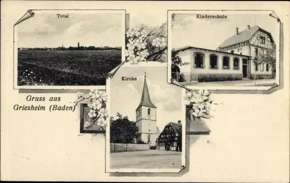 Ak Griesheim Offenburg in Baden Schwarzwald, Kirche, Kinderschule, Totalansicht