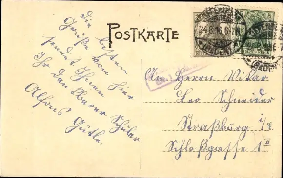 Zustand, siehe Scan, gelaufen, 1916 - ca 14 cm X 9 cm
