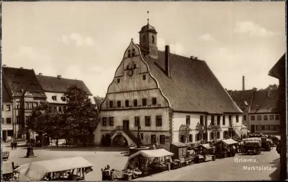 Ak Grimma Mulde Sachsen, Marktplatz mit Ratskeller, Marktleben