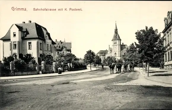 Ak Grimma in Sachsen, Bahnhofstraße, Postamt