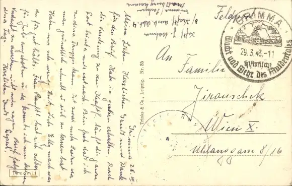 Zustand, siehe Scan, gelaufen, 1943 - ca 14 cm X 9 cm