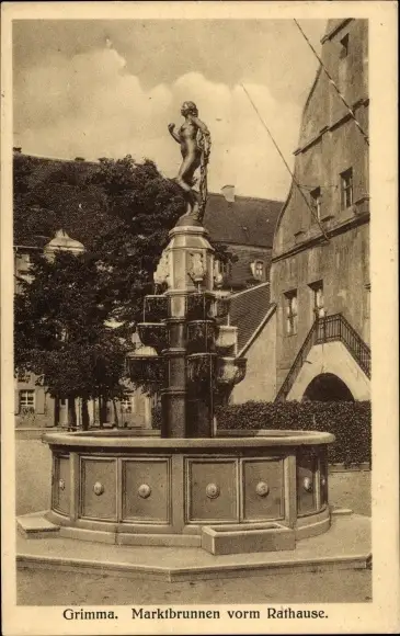 Ak Grimma in Sachsen, Marktbrunnen vorm Rathaus