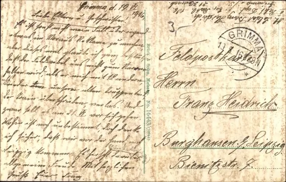 Zustand, siehe Scan, gelaufen, 1916 - ca 14 cm X 9 cm