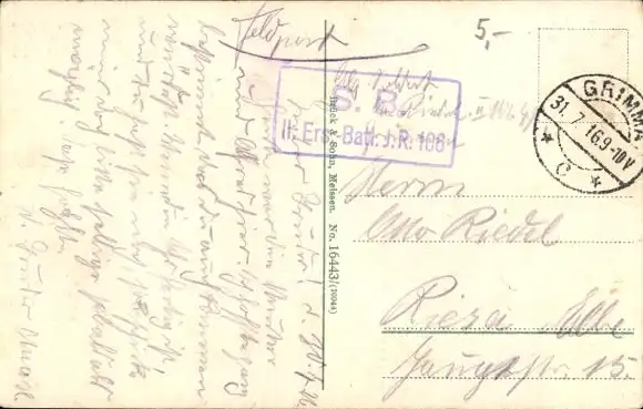 Zustand, siehe Scan, gelaufen, 1916 - ca 5 cm X 3 cm