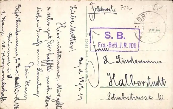 Zustand, siehe Scan, gelaufen, 1917 - ca 14 cm X 9 cm