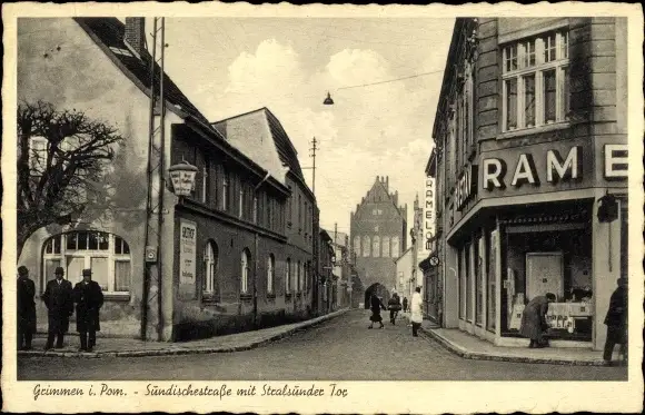 Ak Grimmen in Vorpommern, Sundischestraße, Stralsunder Tor, Geschäftshaus Ramelow