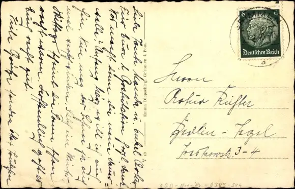 Zustand, siehe Scan, gelaufen, 1940 - ca 14 cm X 9 cm