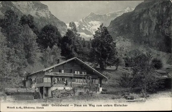 Ak Grindelwald Kanton Bern, Haus am Weg zum untern Gletscher