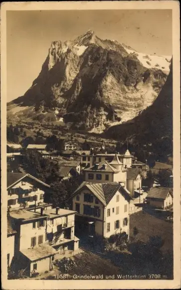 Ak Grindelwald Kanton Bern, Stadtansicht mit Wetterhorn