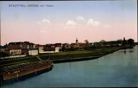 Ak Gröba Riesa an der Elbe Sachen, Hafenpartie, Teilansicht