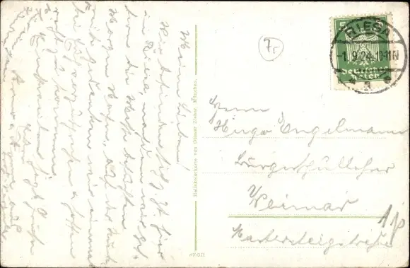 Zustand, siehe Scan, gelaufen, 1924 - ca 14 cm X 9 cm