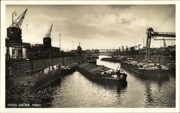Ak Gröba Riesa an der Elbe Sachsen, Hafen