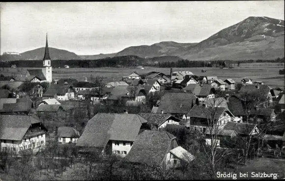 Ak Grödig in Salzburg, Totalansicht vom Ort, Kirche