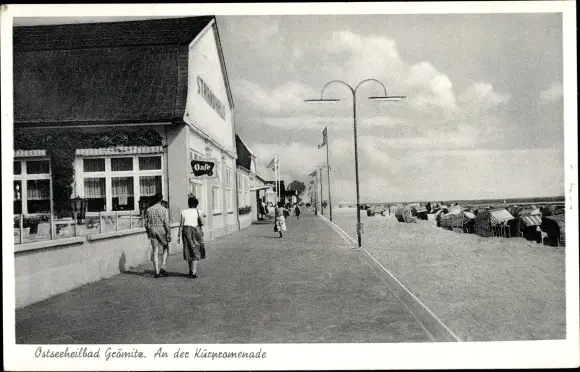 Ak Grömitz Ostsee, Partie an der Kurpromenade, Cafe, Strandkörbe
