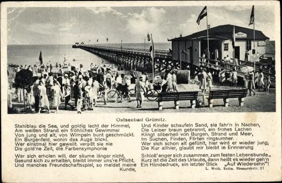 Ak Grömitz in Ostholstein, Passanten auf der Promenade, Anleger
