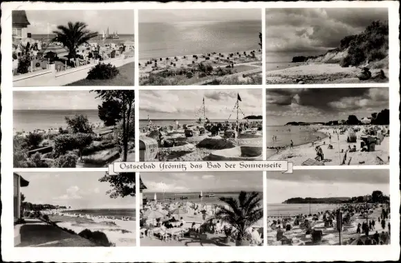 Ak Grömitz in Ostholstein, Strandhalle, Palmenterrasse, Panorama, Strand