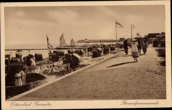 Ak Grömitz in Ostholstein, Strandpromenade, Segelboote