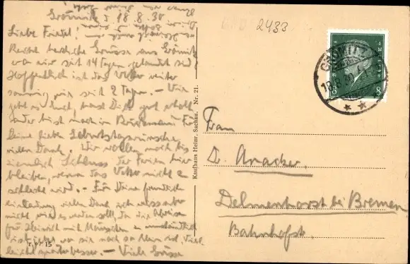 Zustand, siehe Scan, gelaufen, 1930 - ca 14 cm X 9 cm