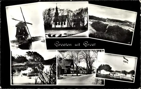 Ak Groet Nordholland, Windmühle, Kirche, Straßenpartie