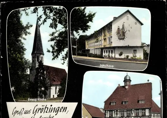 Ak Grötzingen Baden Württemberg, Evang. Kirche, Schulhaus