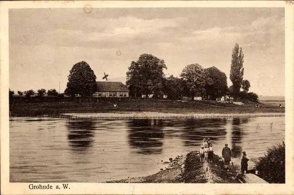 Ak Grohnde Emmerthal an der Weser, Gastwirtschaft, Gartenwirtschaft zur Fähre