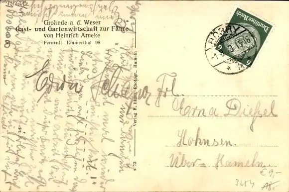 Zustand, siehe Scan, gelaufen- Inh. Heinrich Arneke - ca 14 cm X 9 cm