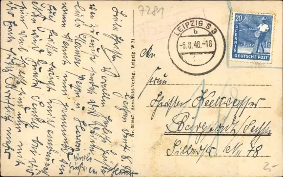 Zustand, siehe Scan, gelaufen, 1948 - ca 14 cm X 9 cm