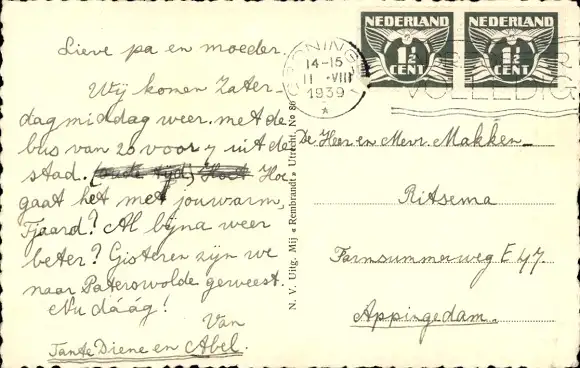 Zustand, siehe Scan, gelaufen, 1939 - ca 14 cm X 9 cm