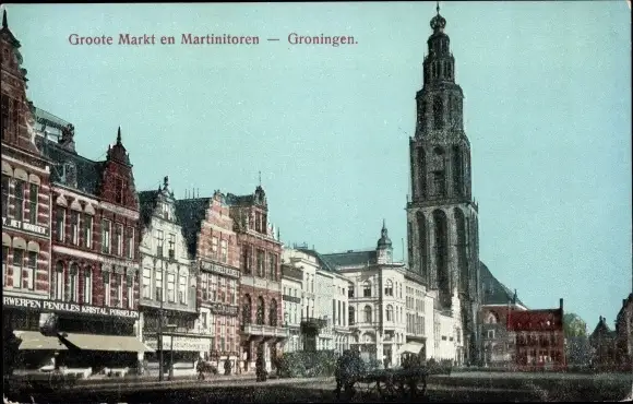 Ak Groningen Niederlande, Groote Markt en Martinitoren