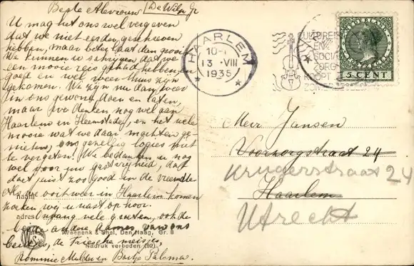 Zustand, siehe Scan, gelaufen, 1935 - ca 14 cm X 9 cm