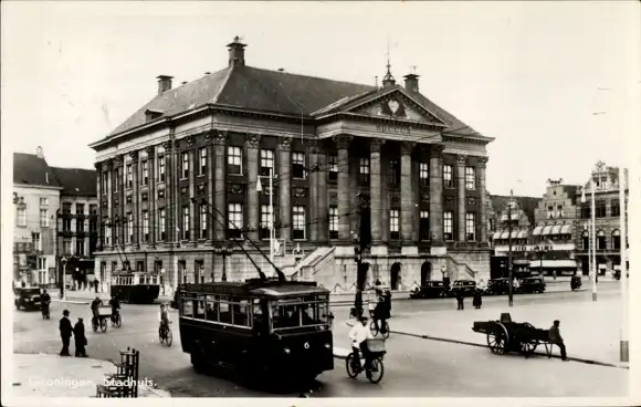 Ak Groningen Niederlande, Rathaus, Straßenbahn