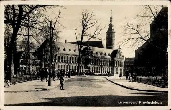 Ak Groningen Niederlande, Rathaus, Straßenpartie, Provinzhaus