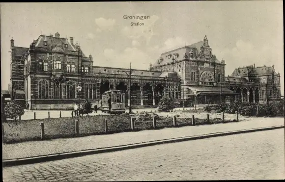 Ak Groningen Niederlande, Station, Bahnhof, Straßenbahn