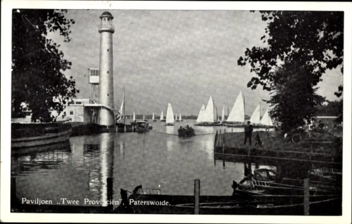 Ak Groningen Niederlande, Twee Provincien, Paterswolde, Leuchtturm, Segelboote