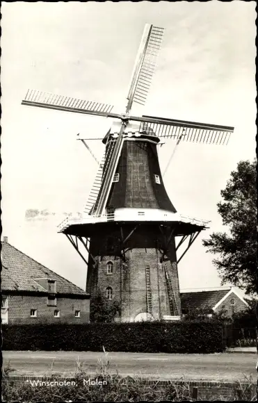 Ak Groningen Niederlande, Winscholen, Windmühle