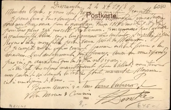 ungelaufen, Rückseite beschrieben, datiert 1918, sehr guter Zustand