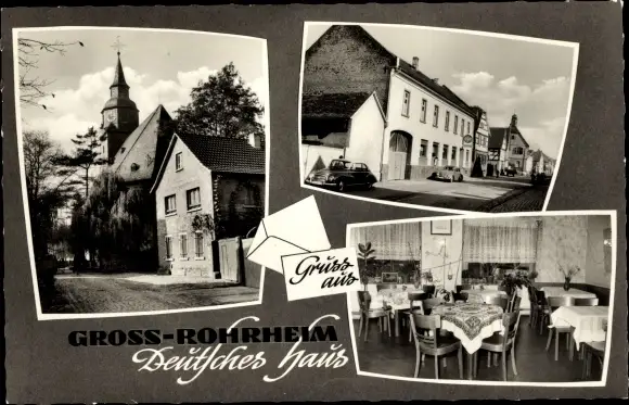 Ak Groß Rohrheim in Hessen, Gaststätte Deutsche Haus, Kirche